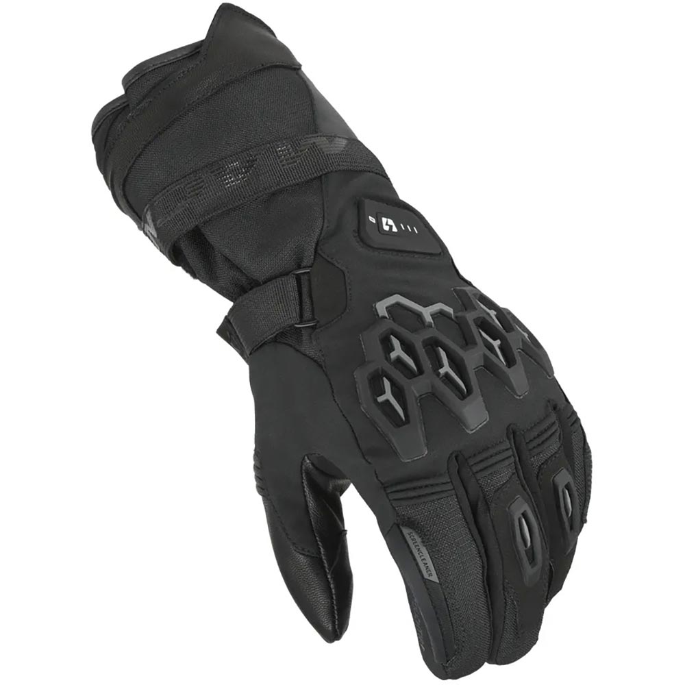Gants Macna Rafino RTX. Gants moto chauffants homme. Conception Ripstop 2 mm. Cuir de chèvre. Muni de la technologie Night Eye™*. Confort / Ergonomie Membrane étanche Raintex assurant une imperméabilité optimale. Doublure thermique Bemberg™. Water Exhaust 2.0™ permettant d’évacuer l’excès d’eau de la zone maillée entre la membrane et la coque extérieure. Construction Ergothumb™ : Panneau de tissu commun entre le pouce et l’index minimisant les coutures et les points de pression tout en donnant un aspect sans plis. Boucle ayant un angle à 30° au poignet maximisant nettement la liberté de mouvement. Poignet élastiqué améliorant le confort. Manchette courte munie d’une patte de serrage velcro offrant un ajustement sûr et personnalisé. Index conducteur Touch Tip permettant d’utiliser ses appareils tactiles sans avoir à retirer ses gants. Raclette visière Screen Cleaner™ permettant de nettoyer l’écran de son casque en cas de pluie. Caractéristiques 4 niveaux de chauffe indiqués avec 4 couleurs différentes par le contrôleur de puissance indiquant également la quantité d’énergie qu’il reste et permettant de modifier le niveau en appuyant dessus. Power Controller : Indicateur d’autonomie de la batterie. Technologie Dual Power permettant aux gants d’être raccordés à, en option : La batterie 7,4V 6A. La batterie 12V 6A. La batterie de votre moto. Application MACNA Heated via Bluetooth permettant de contrôler entièrement son gant chauffant. Protection / Sécurité Protection des doigts en TPR. Renfort paume R.I.S.C. en TPU. Coque de protection métacarpienne EXO R.I.S.C. Les gants chauffants moto Macna Rafino RTX sont certifiés CE comme EPI de niveau 1. Autres détails Détails réfléchissants. Technologie *Night Eye™* Lumineux la nuit. Tissu recouvert de minuscules perles agissant comme des antennes paraboliques permettant de renvoyer la lumière vers sa source.